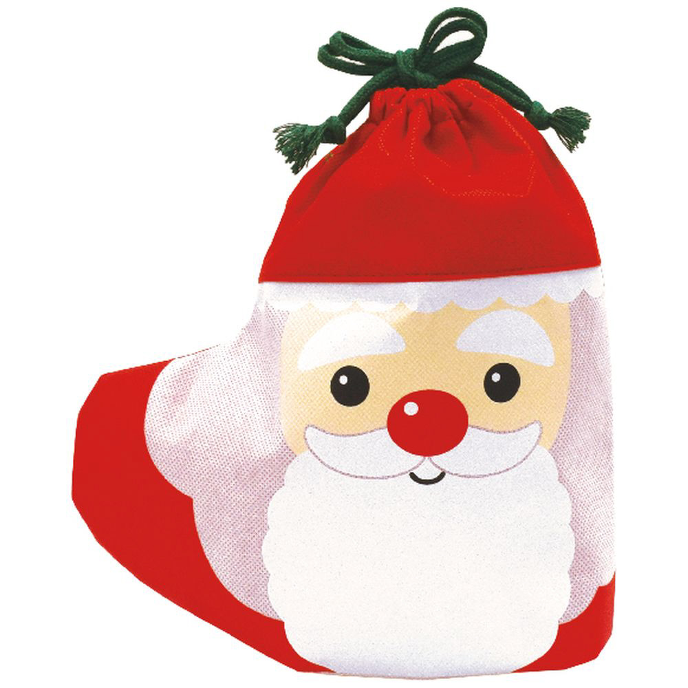 ブーツ型のギフトバッグ。全面に印刷されたサンタの顔が印象的なバッグです。