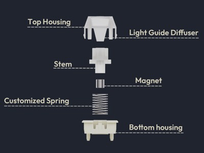 RGBの光をやさしく拡散し、ギラつきを抑えてスイッチの色を美しく際立たせます。