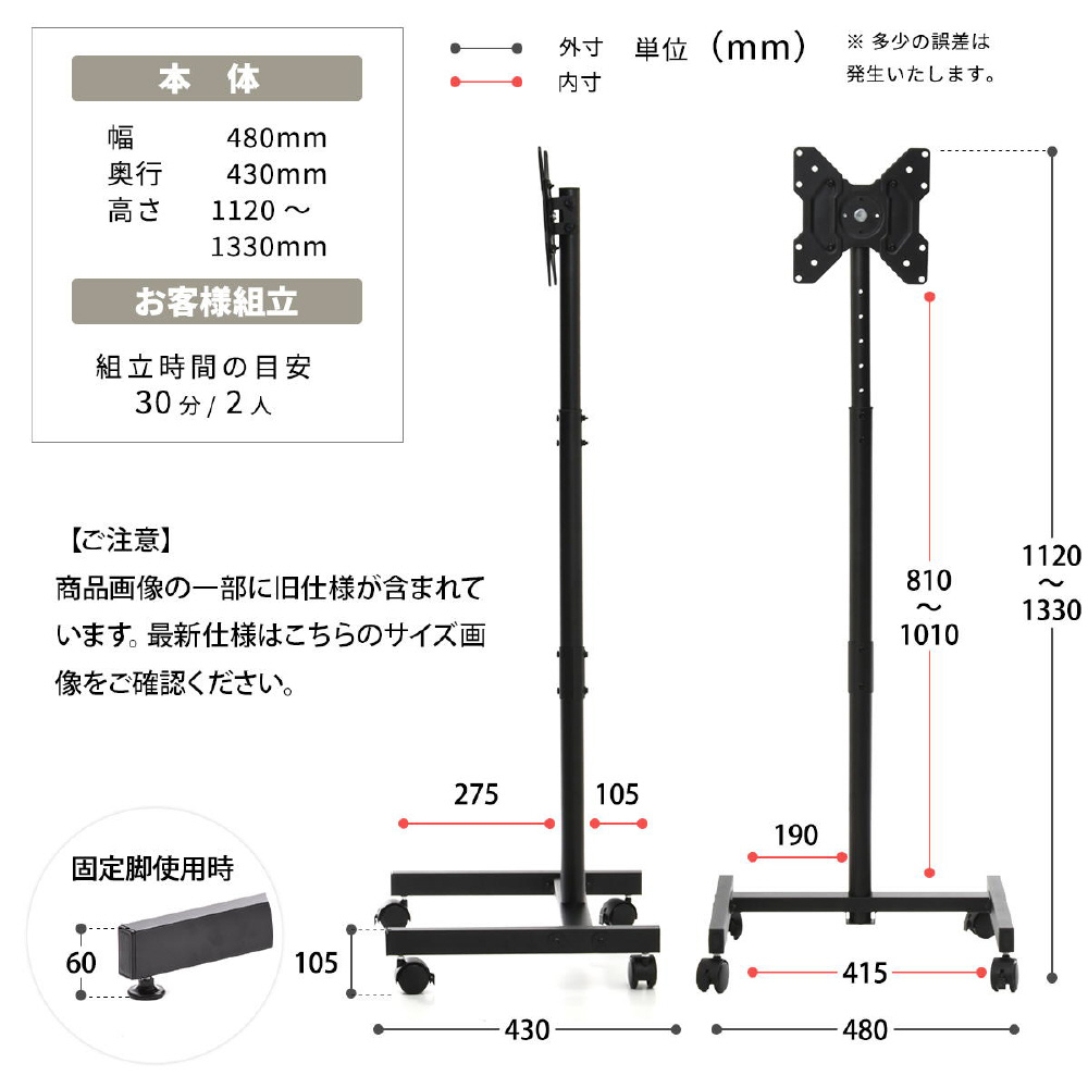 キャスター付きテレビスタンド Alloy ブラック ONTV0287KIBLK