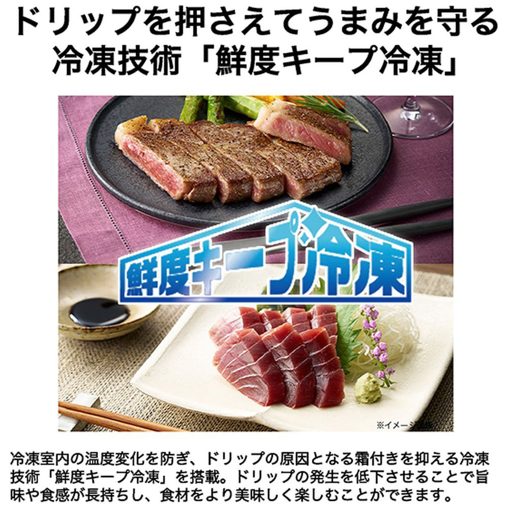 冷凍室内の温度変化を防ぎ、ドリップの原因となる霜付きを抑える冷凍技術「鮮度キープ冷凍」を搭載。ドリップの発生を低下させることで旨味や食感が長持ちし、食材をより美味しく楽しむことができます。