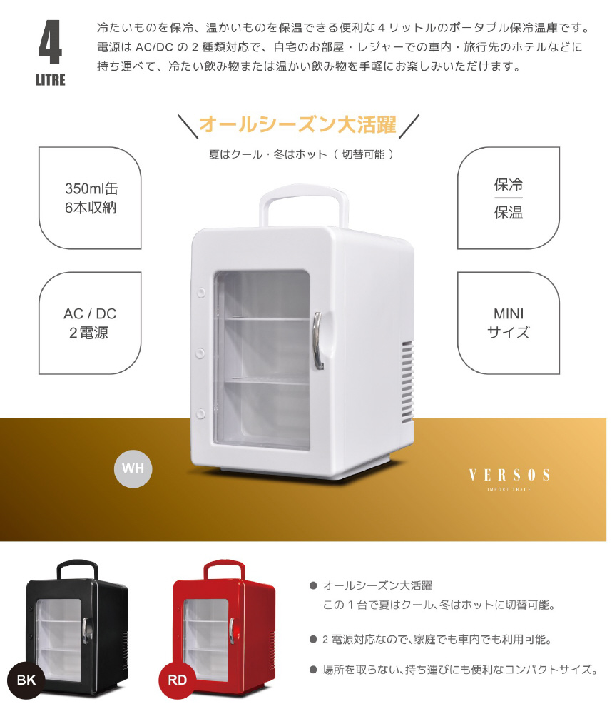 | 商品名 | VS-CW004RD ポータブル冷温庫 4L ベルソス レッド |