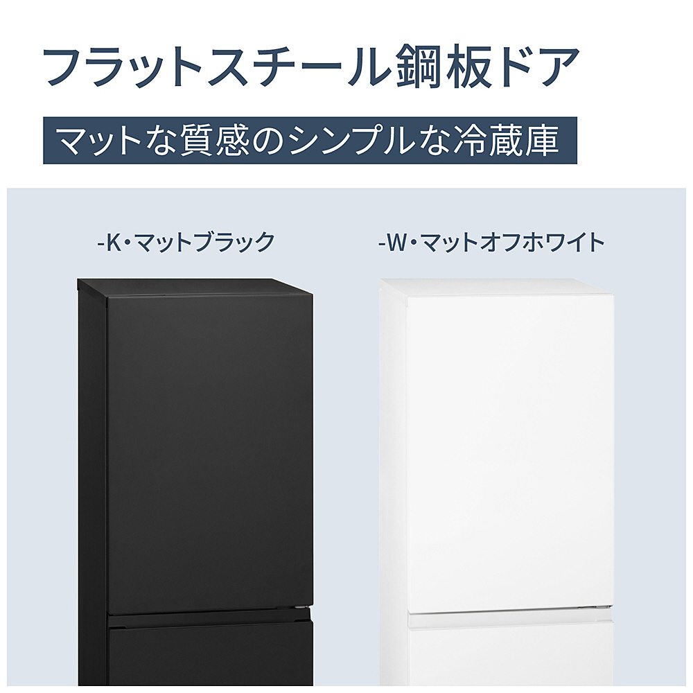 インバータ―搭載で静音&省エネ設計のパーソナル冷蔵庫。落ち着いた質感のマットカラーを採用。