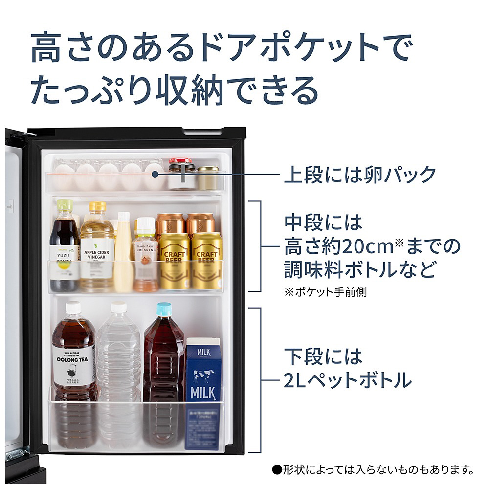・高さがあるものも取り出しやすく、たっぷり収納できる「3段のドアポケット」