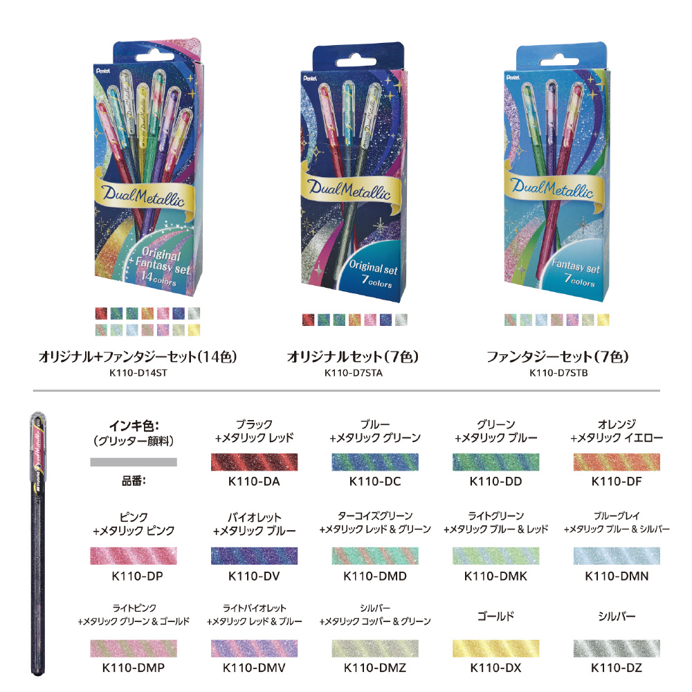 グリッター入りゲルインキボールペン デュアルメタリック オリジナルセット7色 K110-D7STA [1.0mm]
