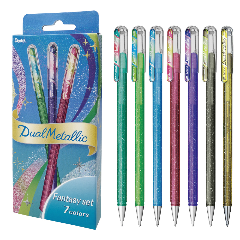 グリッター入りゲルインキボールペン デュアルメタリック ファンタジーセット7色 K110-D7STB [1.0mm]