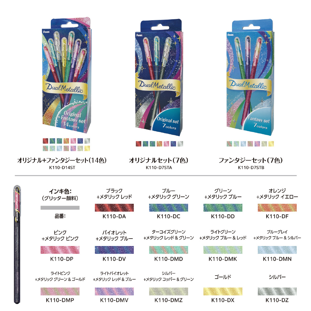| 商品名 | グリッター入りゲルインキボールペン デュアルメタリック ファンタジーセット7色 K110-D7STB [1.0mm] |