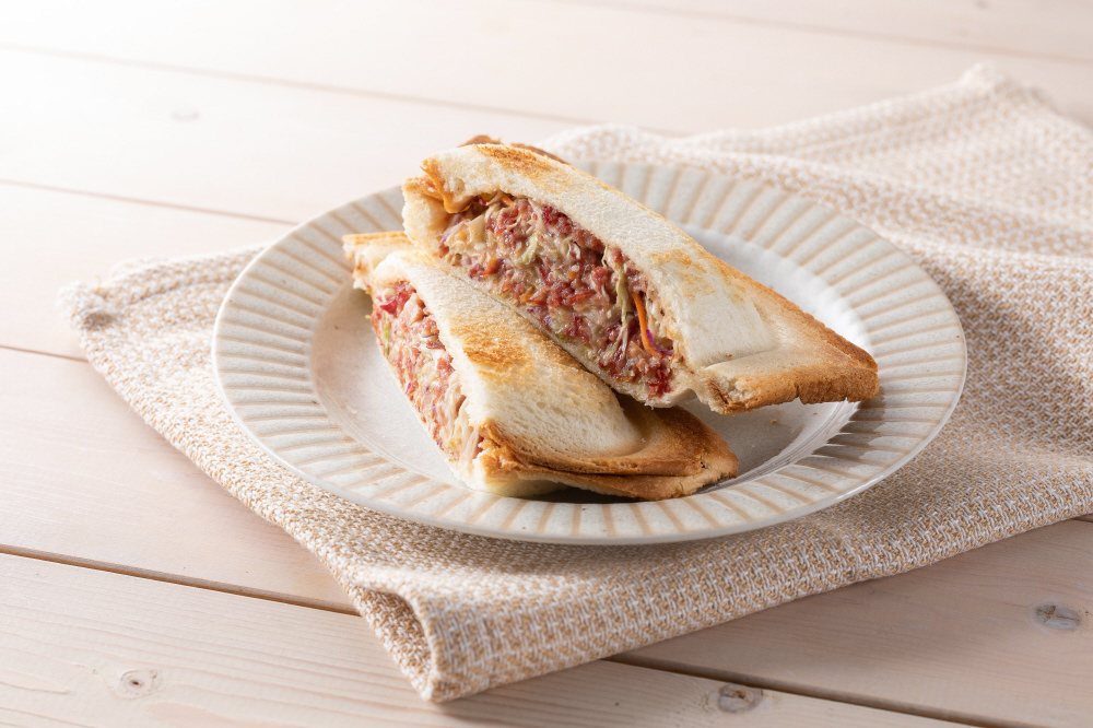 アラジンホットサンドメーカーは、食パンのミミを切らずに食材をはさむだけ!カリッとおいしいホットサンドが作れます。