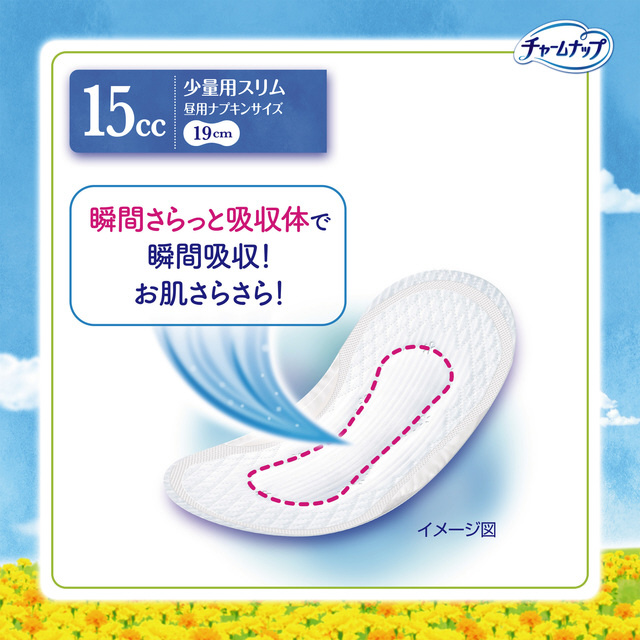 ●瞬間さらっと吸収体で瞬間吸収し、表面に残る間もなく、お肌さらさら!