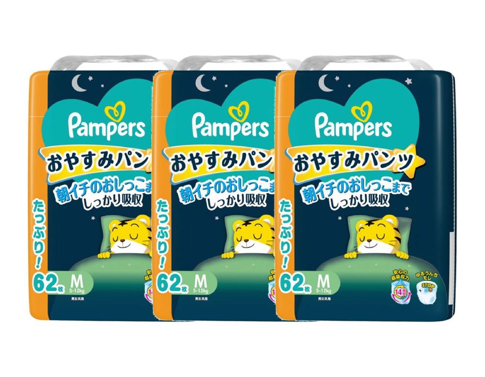 【ケース販売】Pampers(パンパース) おやすみパンツ ウルトラジャンボM(5-12kg)62枚×3個