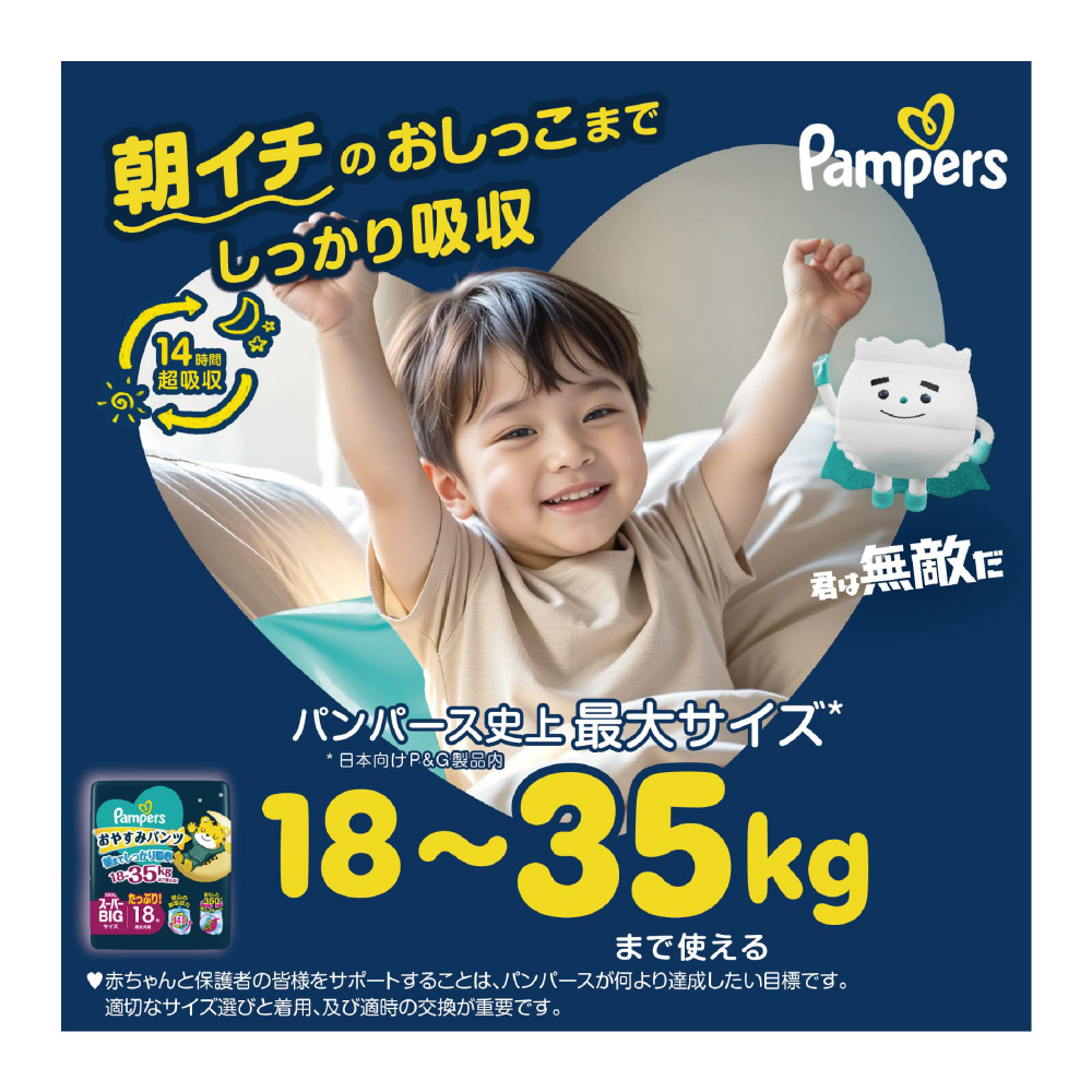 | 商品名 | 【ケース販売】Pampers(パンパース) おやすみパンツ スーパービッグ(18-35kg)18枚×4個 |