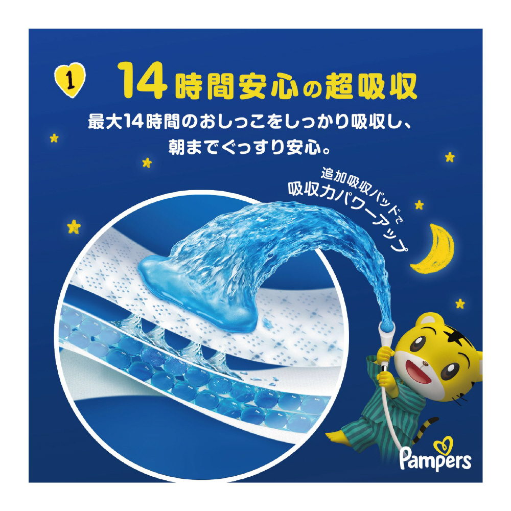 14時間安心の超吸収力で、朝イチのおしっこまでしっかり吸収!忙しい朝にもモレ安心!
