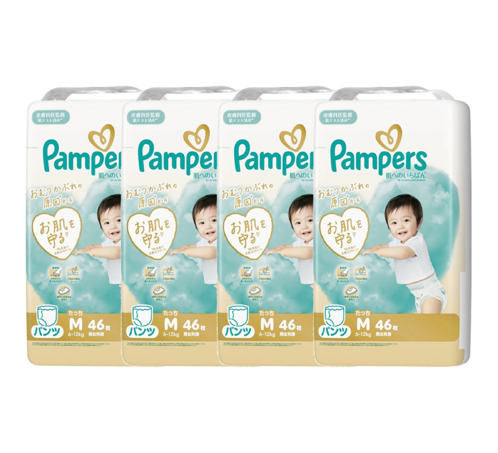 【ケース販売】Pampers(パンパース) 肌へのいちばんパンツ スーパージャンボMたっち(6-12kg)46枚×4個