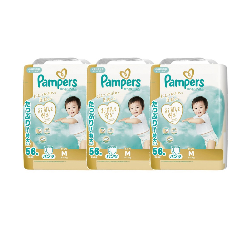 【ケース販売】Pampers(パンパース) 肌へのいちばんパンツ ウルトラジャンボMたっち(6-12kg)56枚×3個