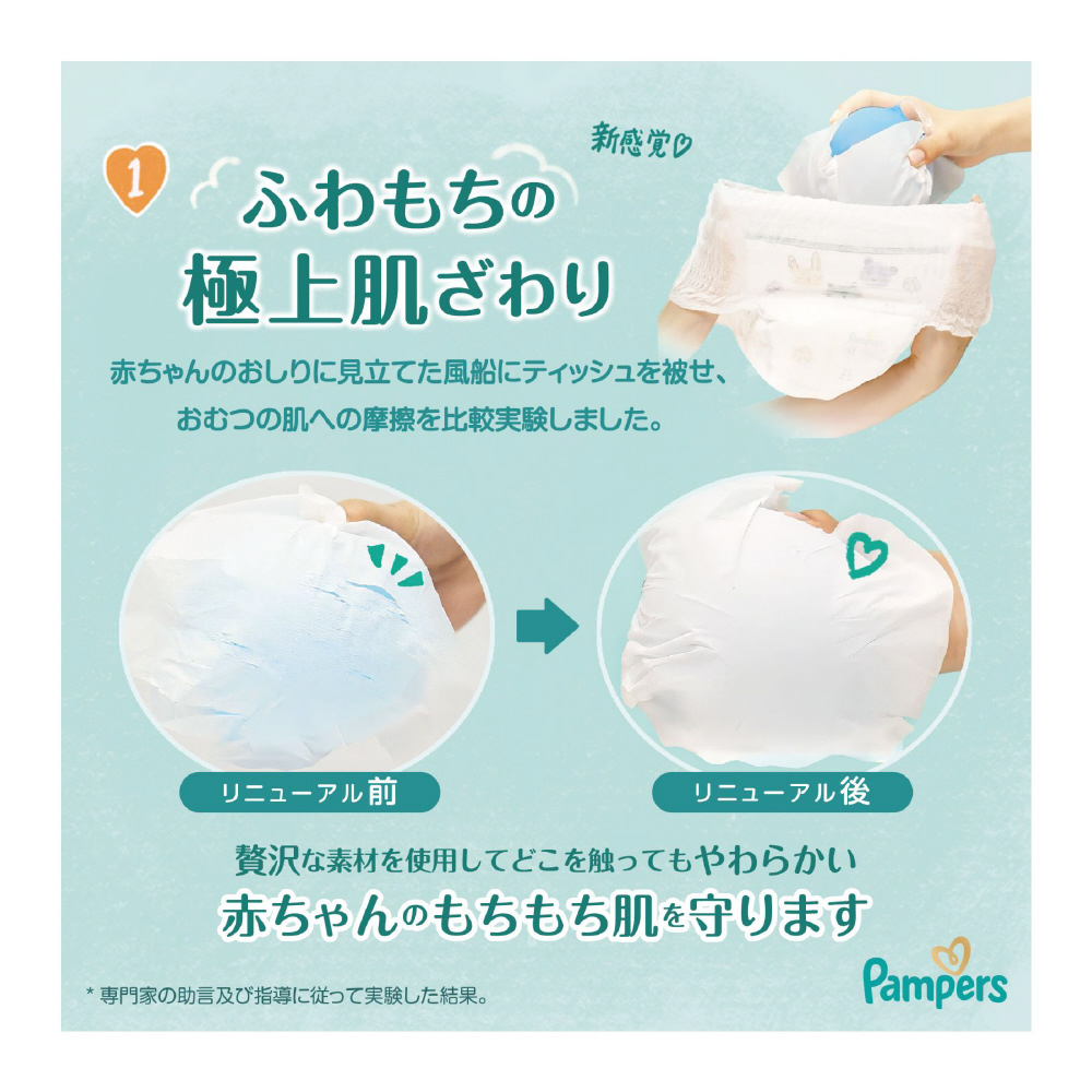 *1 すべての人の皮膚に影響がないわけではありません。第三者研究所(米国)において。 赤ちゃんの肌に直接触れる素材について。 パンパース オムツ