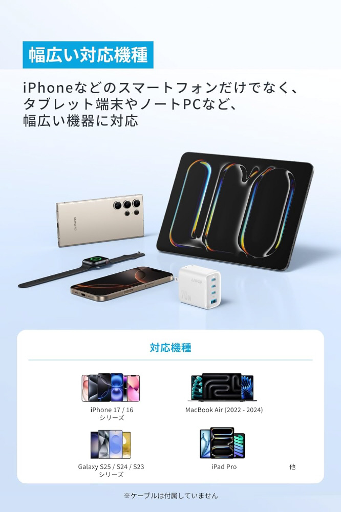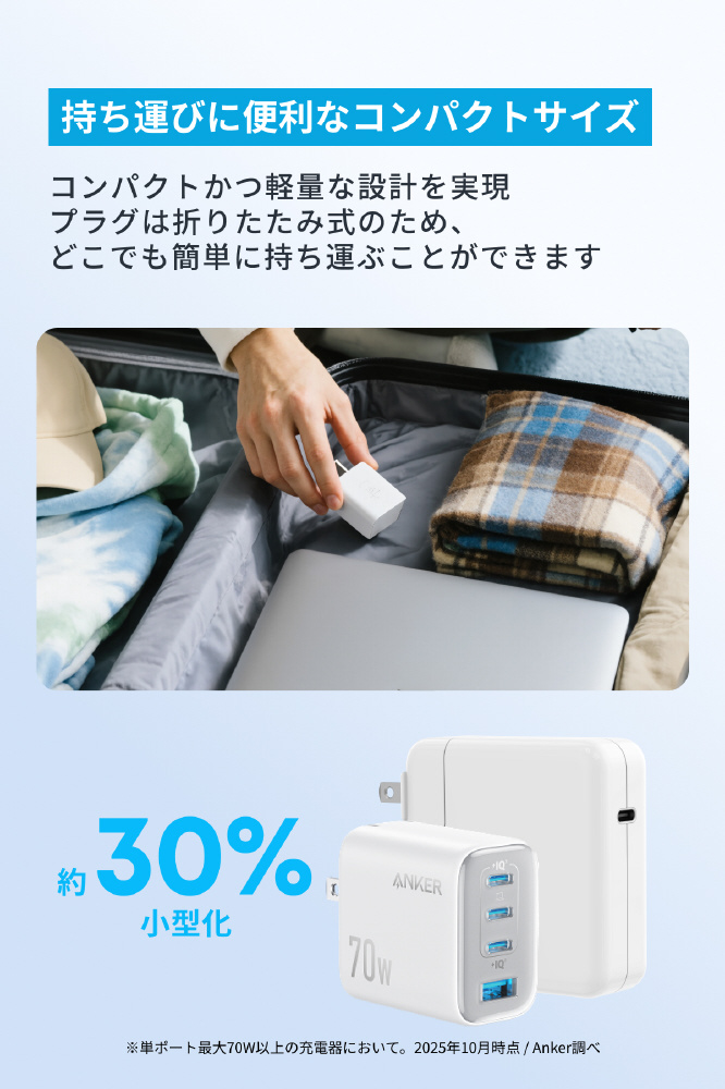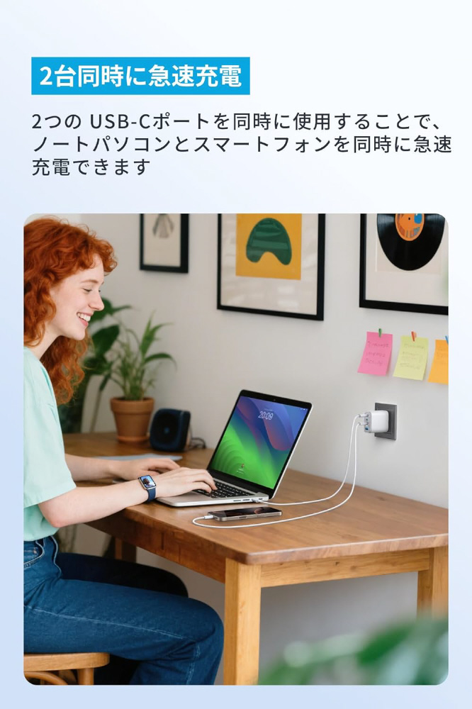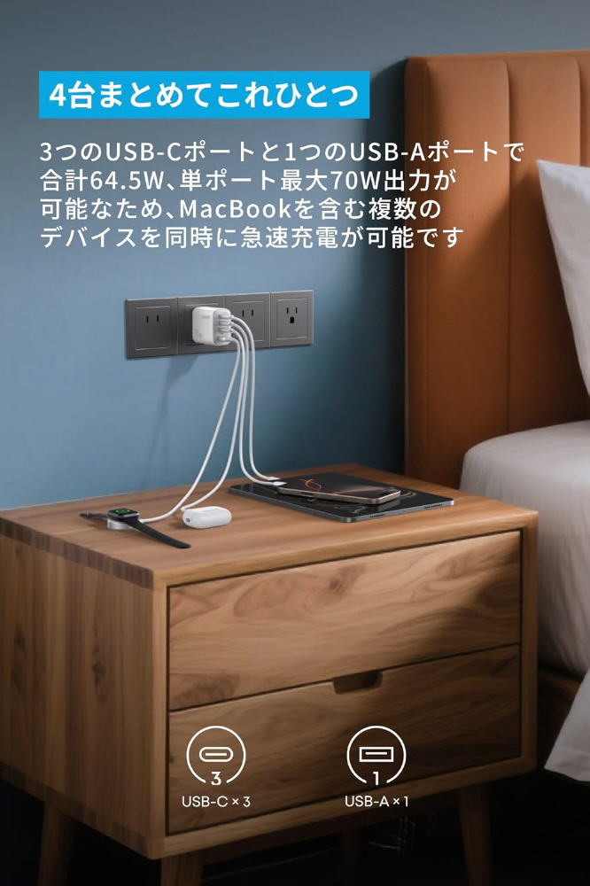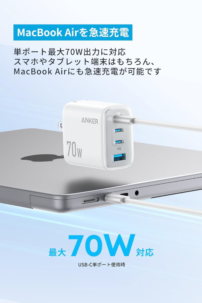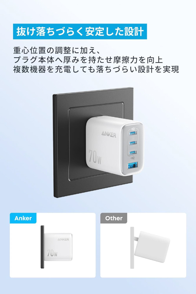 急速充電器 Anker Zolo Charger (70W、4 Ports) ホワイト A121CN21 [4ポート /USB Power Delivery対応] 【sof001】