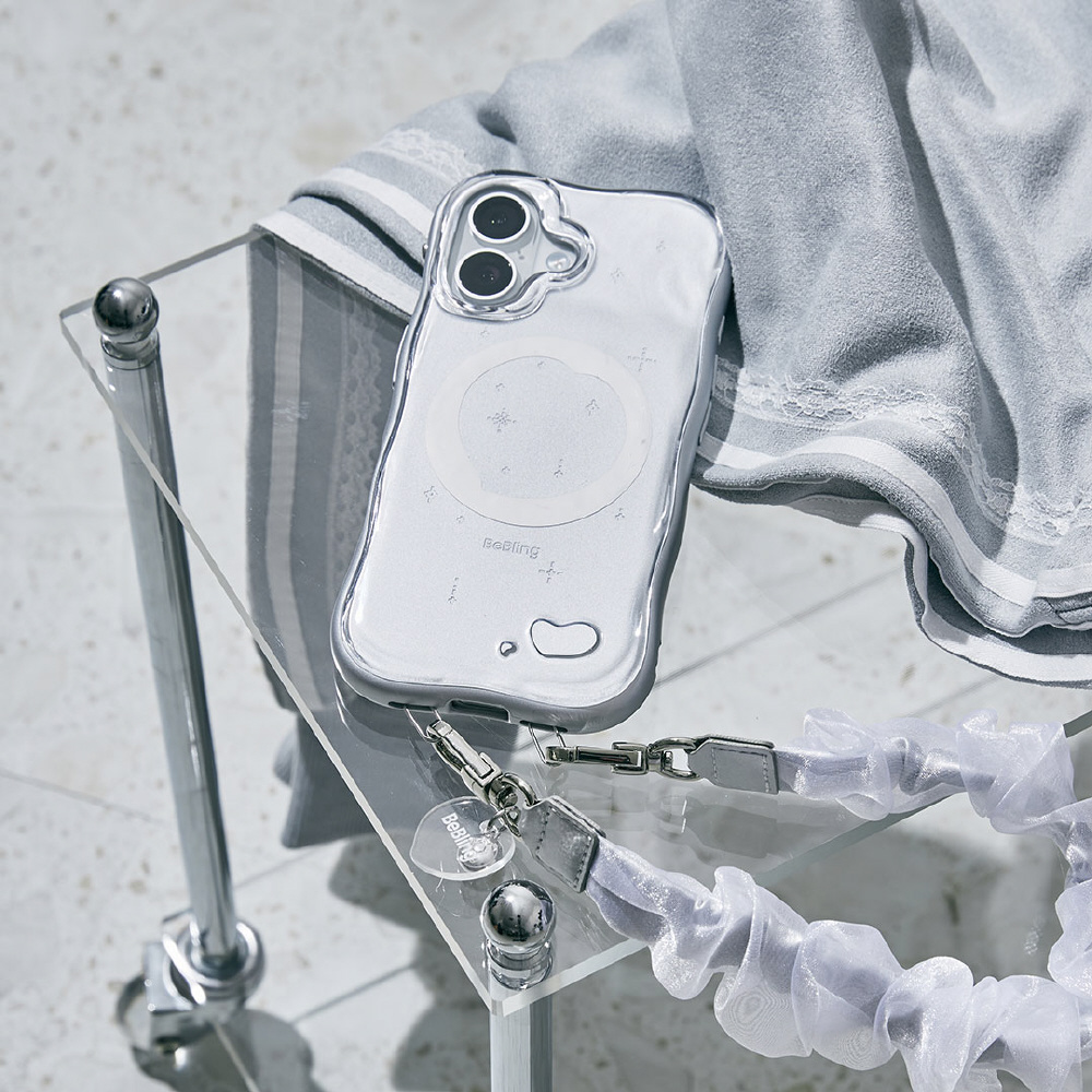 ・シルバーカラーに重なるクリアな背面の対比がアクセント