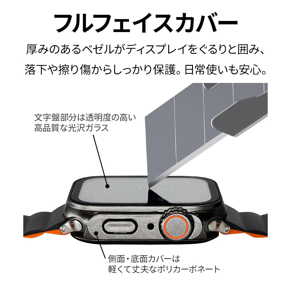 Apple Watch series10 46mm ガラスフィルム ケース カバー ハイブリッド 高光沢 高透明 PC+GLASS ガラス一体型プロテクター 表面硬度8H アップルウォッチ ブラック GHB5154AW46