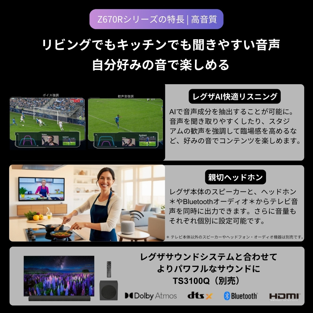 ネット動画も美しく。スマホもゲームも、もっと楽しめる。レグザ インテリジェンスのAI技術が、さらなる楽しさを追求したアクティブレグザ。