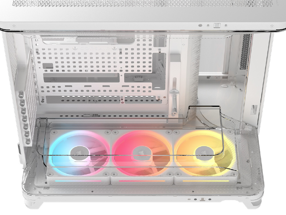 冷却効率を最大化するトリプルチャンバー構造を採用。リバースローター設計のiCUE LINKファンを備えるミドルタワー型PCケース