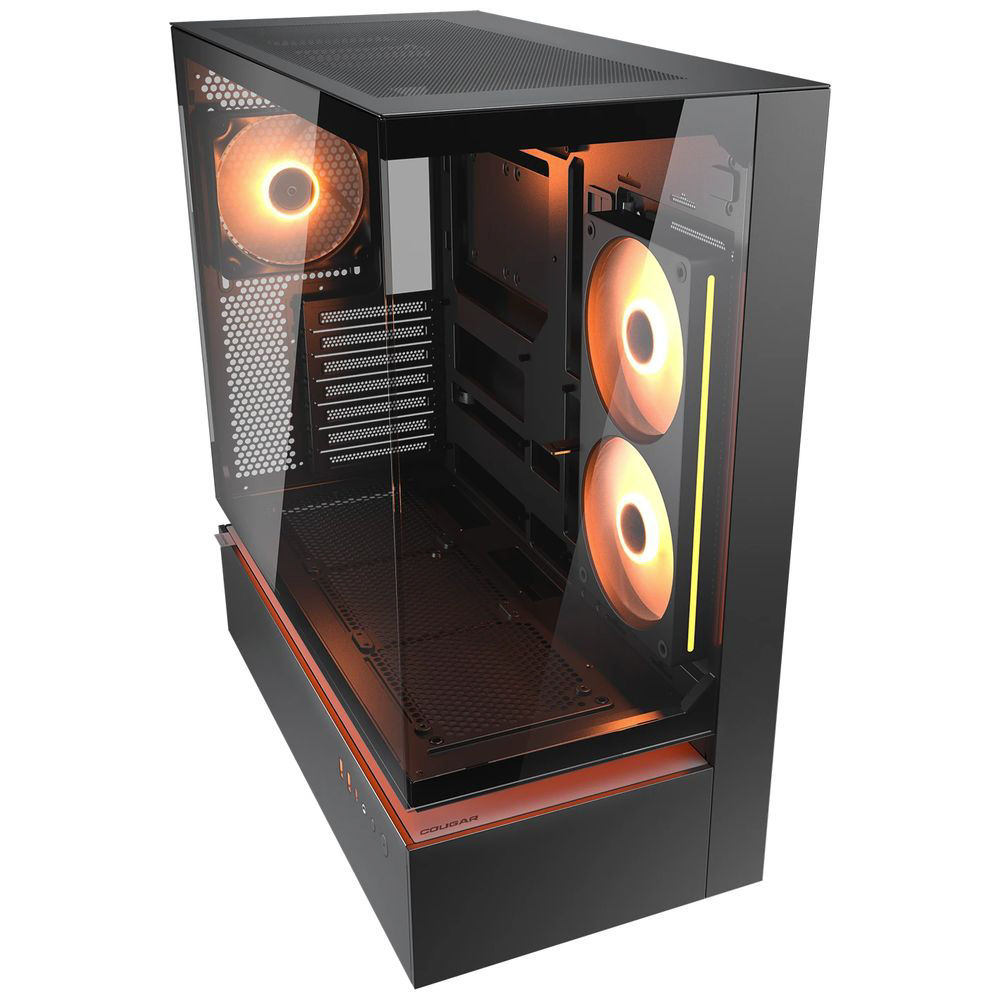 COUGAR独自の「CFV(セントラル・フローティング・ベンチレーション)」構造を採用する、ピラーレス設計のミドルタワーケース「CFV235」。