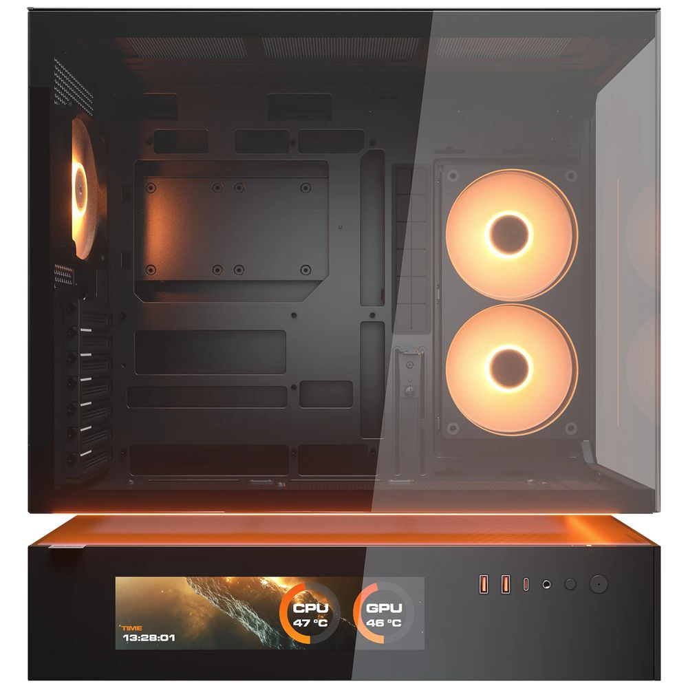 「CFV235 Vision」では、下部エリアに9.16インチの液晶ディスプレイを搭載。温度、ファン速度など、システムの状態表示のほか、専用のソフトにて画像や動画(JPG、PNG、GIF、MP4)など、カスタマイズ表示が可能です。