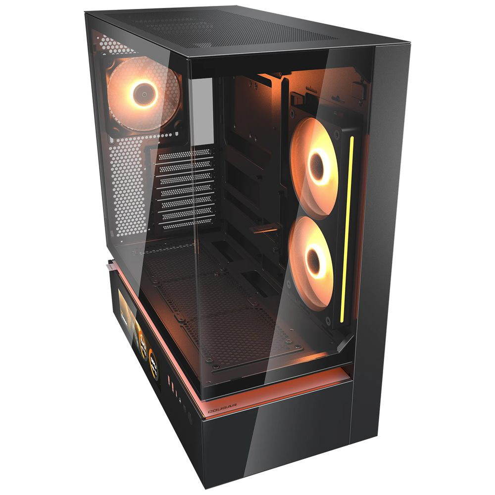 COUGAR独自の「CFV(セントラル・フローティング・ベンチレーション)」構造を採用する、ピラーレス設計のミドルタワーケース「CFV235 Vision」。