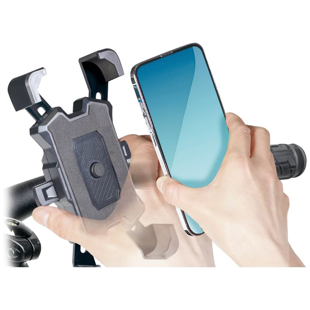 φ25mmまでのハンドルバーに、取り付け可能でスマホのサイズに合わせて簡単に固定。
