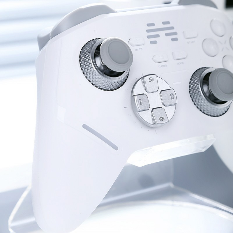 特許取得済みのボタン構造となっており、従来の上下左右のみに限定された十字キーとは異なり、斜め方向を含む360°