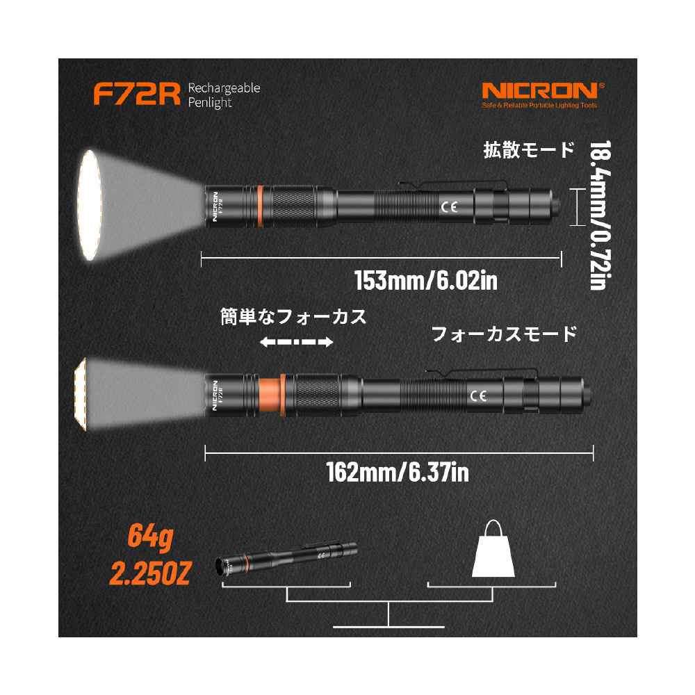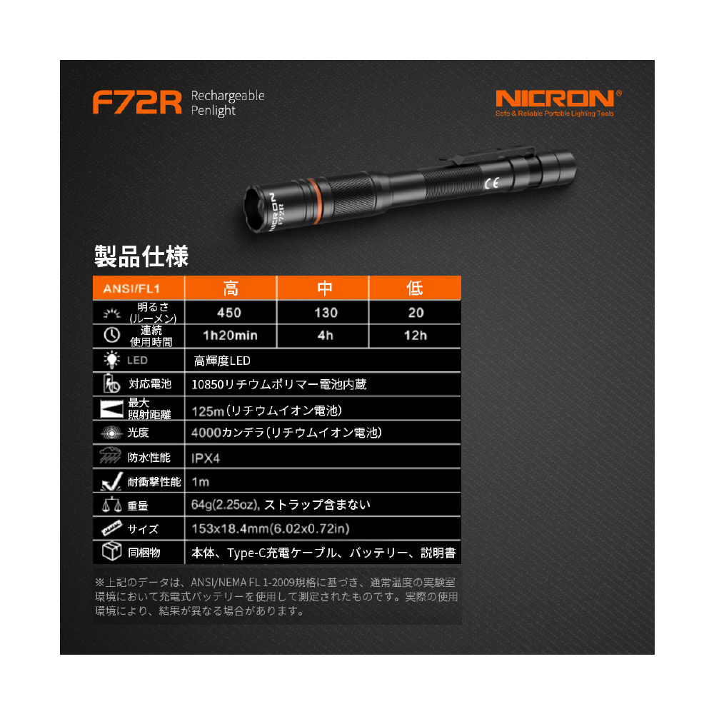 | 商品名 | ペンライト 450LM ブラック F72R |