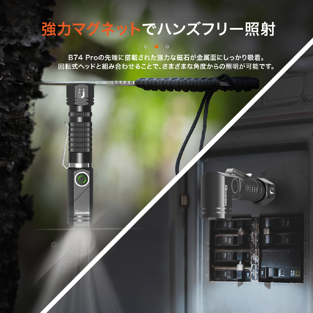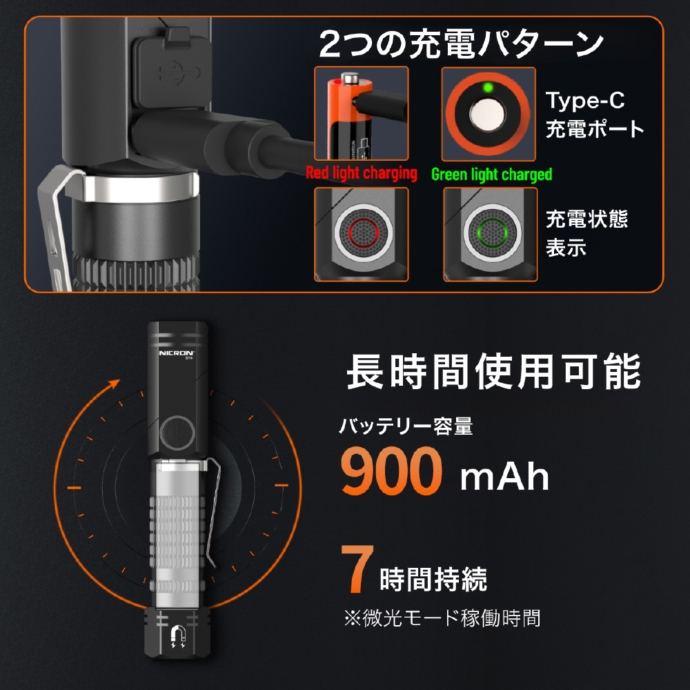 ●明るさ3段階調節可能。●最大600LM●ライト部分は90度回転することができます。●高発色白色LEDライトを使用。●記憶機能付。●タイプCの充電口付き●充電中は押ボタン部分のインジケーターが赤色、満充電で緑色に点灯します。●クリップ付き、ベルトやポケットにも装着が可能。●強力マグネット付きなので、ハンズフリーで使用が可能です。