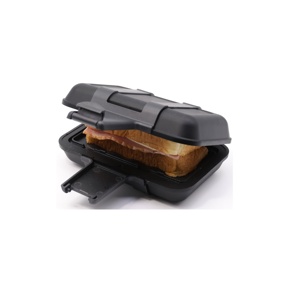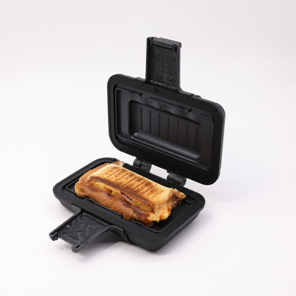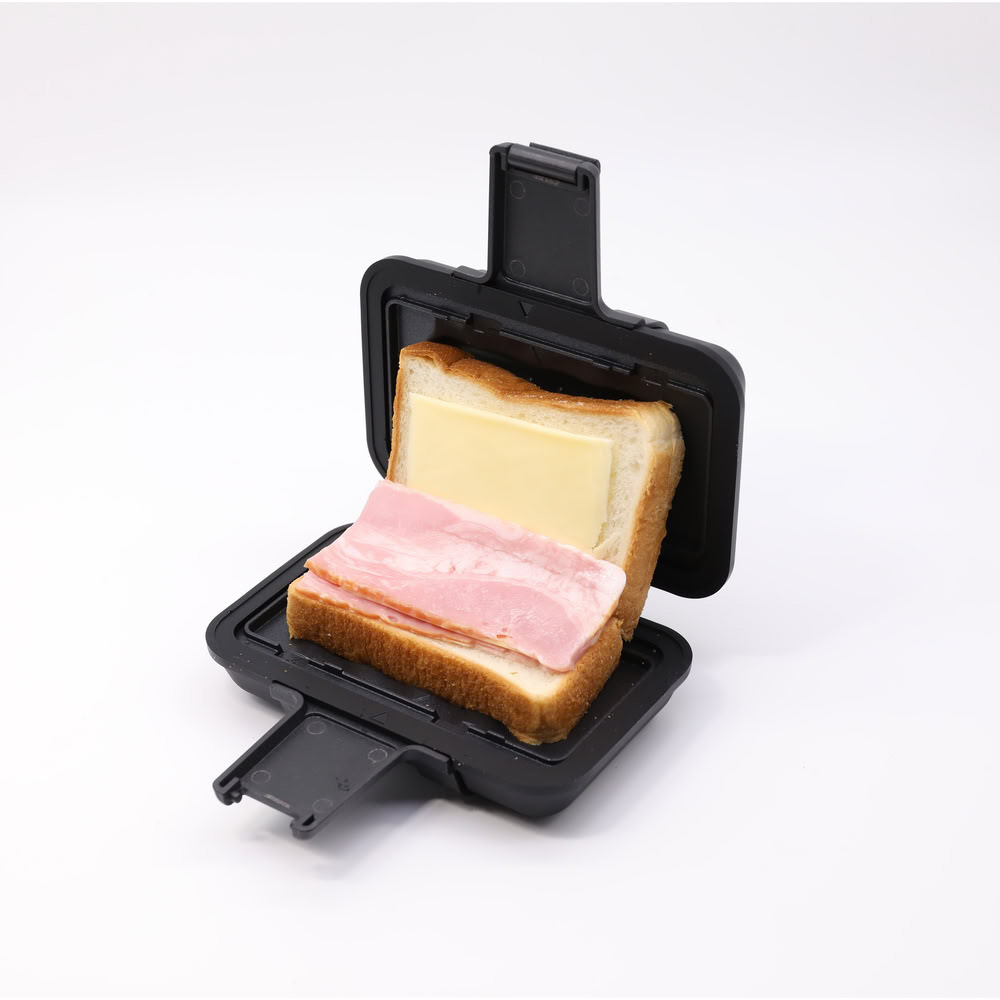 食パンと具材をセットしてレンジに入れるだけ。トースターを使わずに、短時間でアツアツのホットサンドが完成します。
