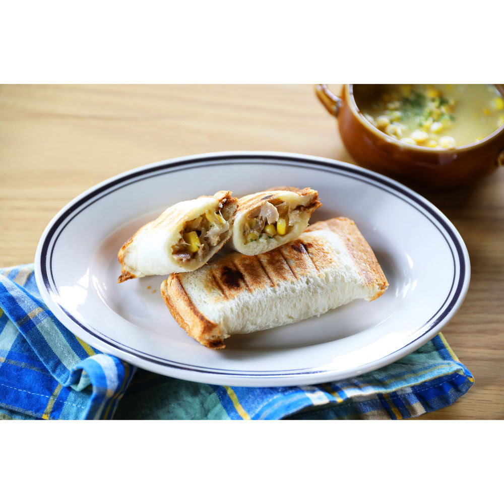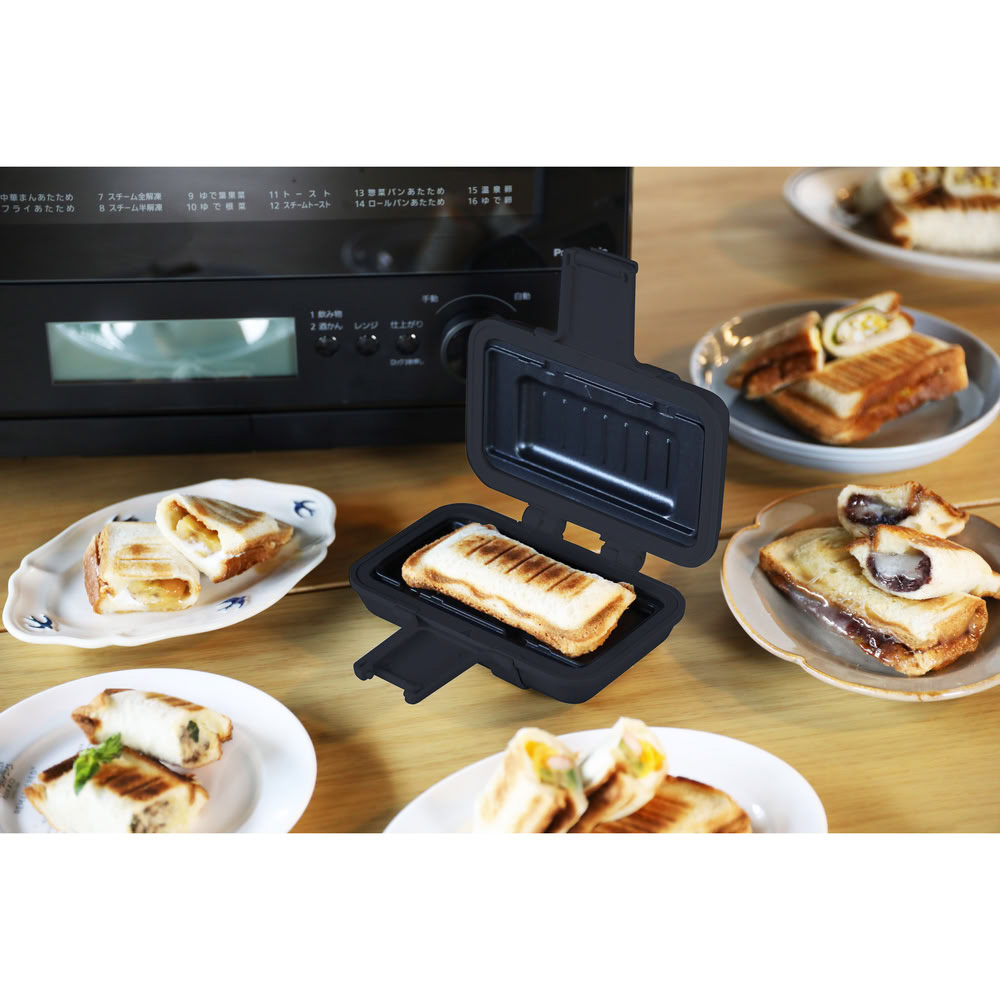 アルミメッキ鋼板とふっ素樹脂塗膜加工により、パンには香ばしい焼き目がつき、具材はジューシーでとろける仕上がりに。