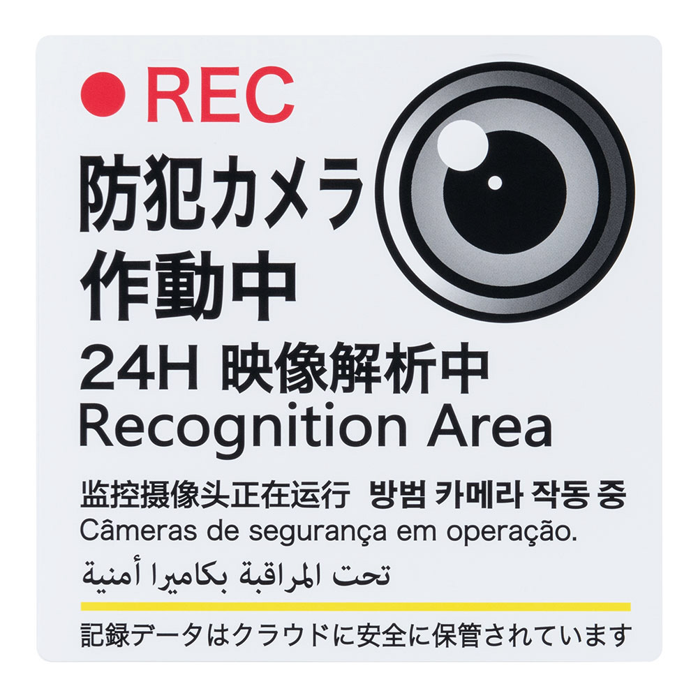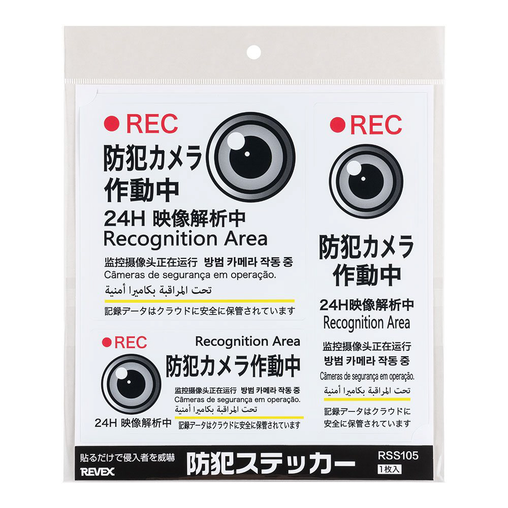 | 商品名 | 防犯ステッカー「防犯カメラ作動中」6ヵ国語 白 RSS105 |