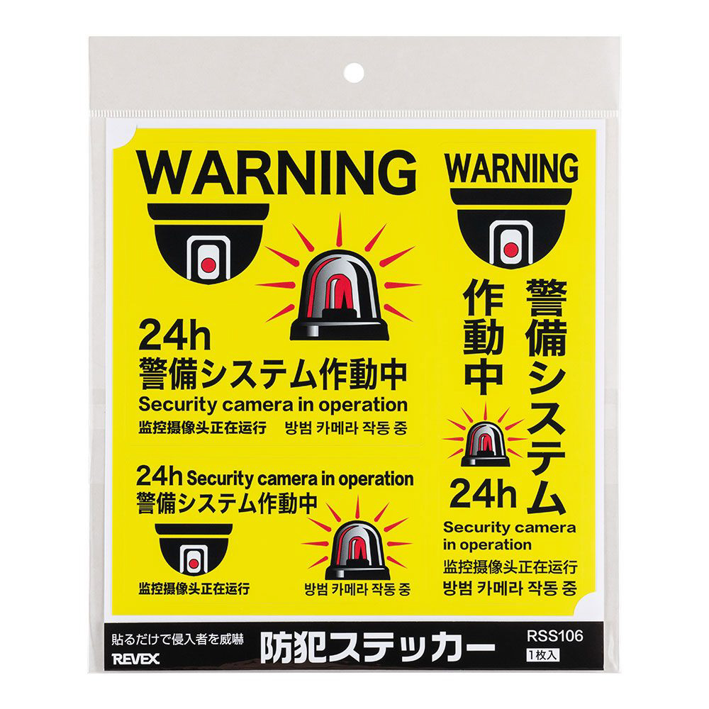 | 商品名 | 防犯ステッカー「警備システム作動中」4ヵ国語 黄 RSS106 |