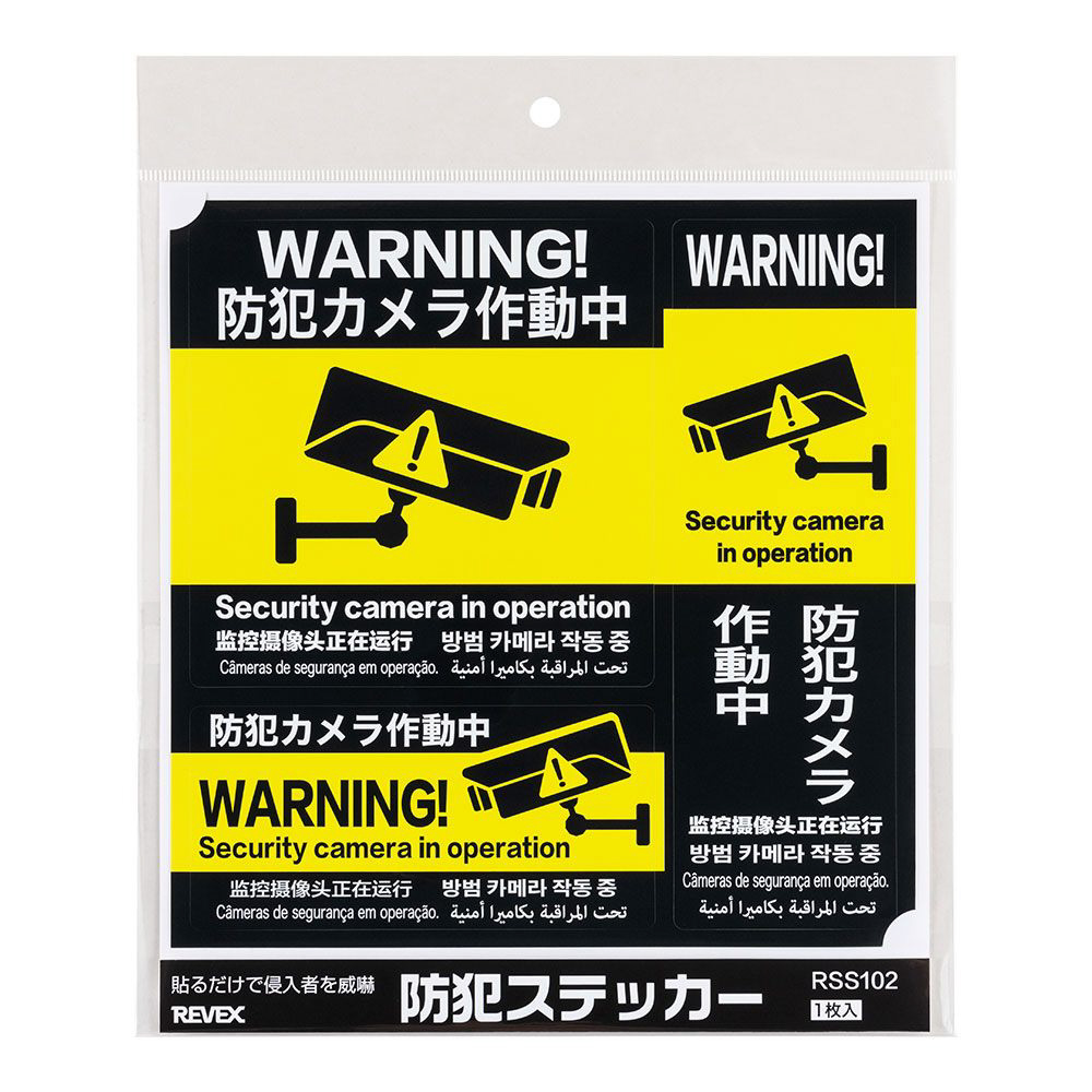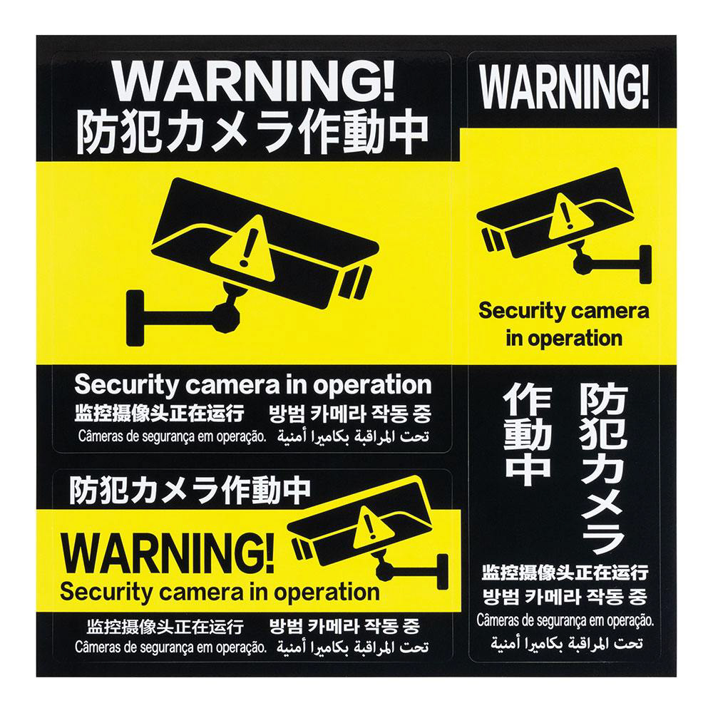 | 商品名 | 防犯ステッカー「防犯カメラ作動中」6ヵ国語 黄 RSS102 |