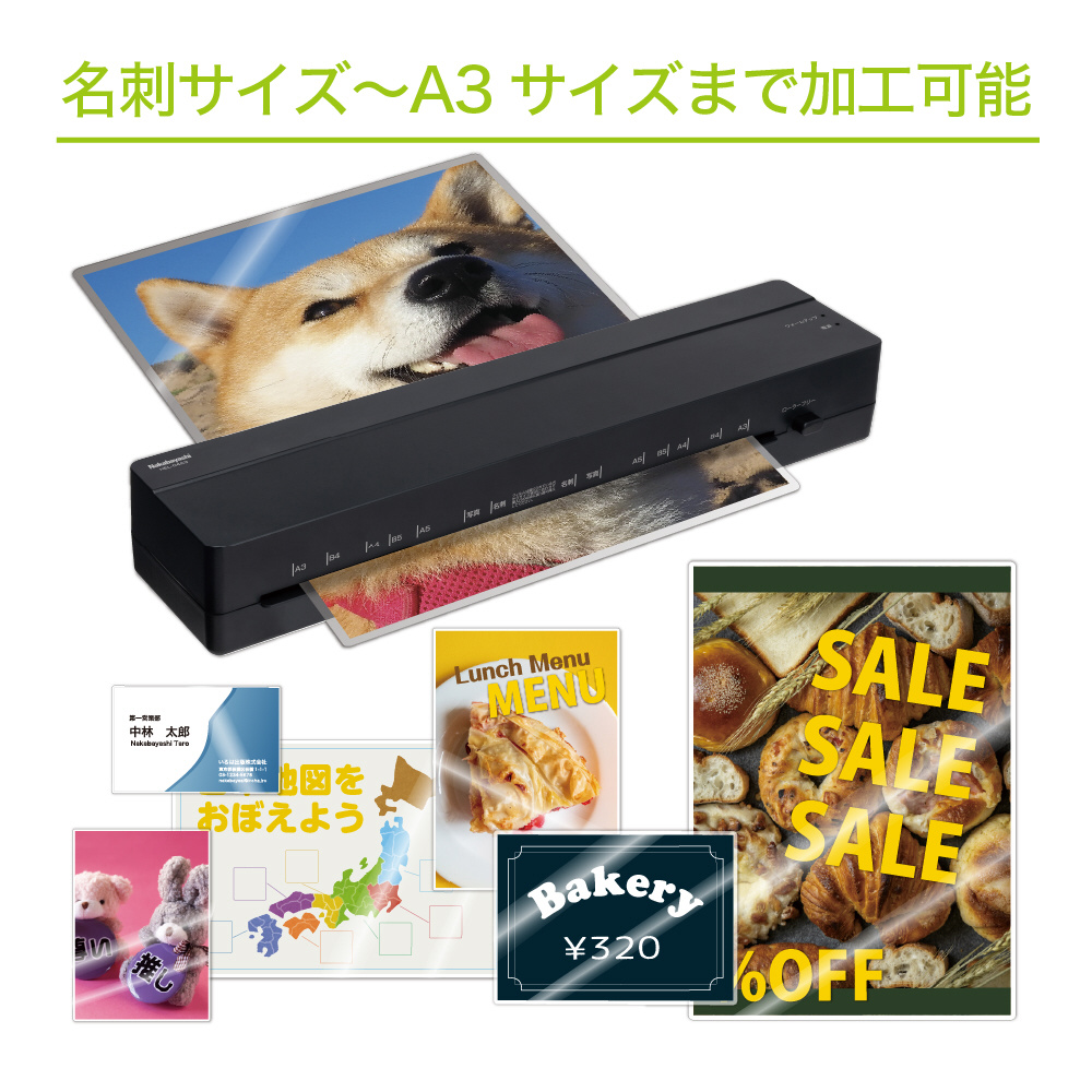 最大ラミネート幅:330mm(最小は名刺サイズ)