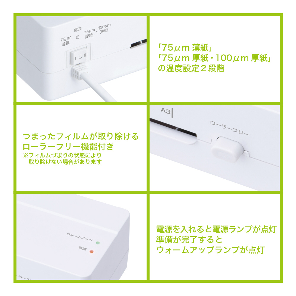 | 商品名 | パーソナルラミネータA3 [A3サイズ /2本] |