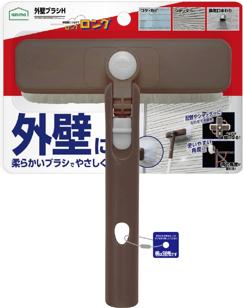 柔らかいブラシで外壁を優しく掃除するブラシ。清掃する場所に合わせてヘッドの角度と柄の角度が変えられます。