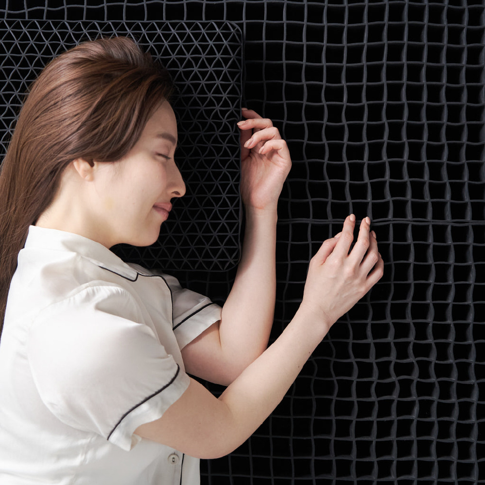 四方格子構造で空気の通り道ができるため、通気性はバツグンです。熱や湿気がこもりにくいため、熱による寝苦しさから解放し、快適な睡眠環境を整えます。