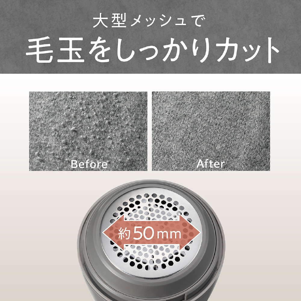 約50mmの大型メッシュで、目立つ毛玉もしっかりカットします。