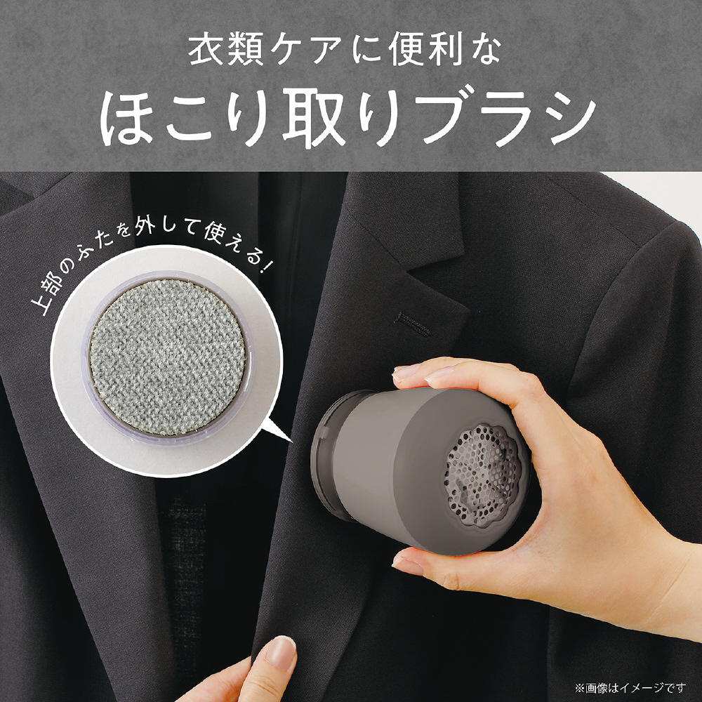 上部のフタを取るとホコリ取りブラシがついているので、しっかり毛玉を取った後のお手入れや出かける前の身だしなみチェックも完璧です。