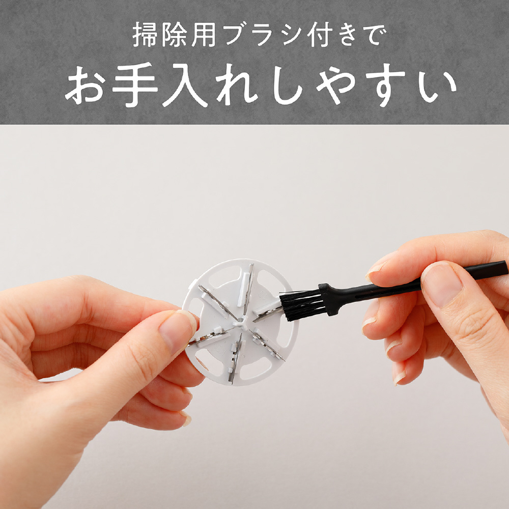 毛玉くずやほこりをお手入れしやすい掃除用ブラシが付属します。