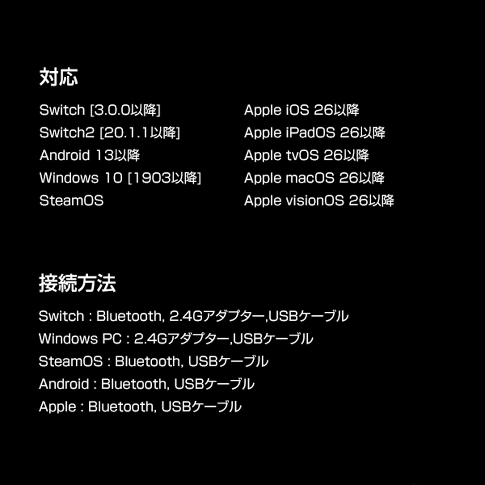 商品名 無線・有線接続 ゲーミングコントローラー Switch/Switch2/Windows PC/MacOS/Android/iOS対応