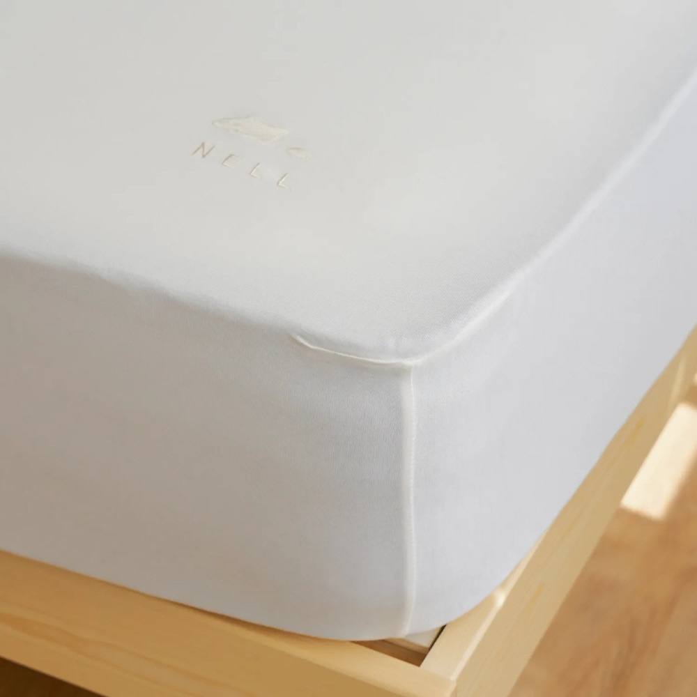 寝返りを打ってもズレにくい、NELL マットレス専用のシンデレラフィットシーツ。実用新案を取得済。