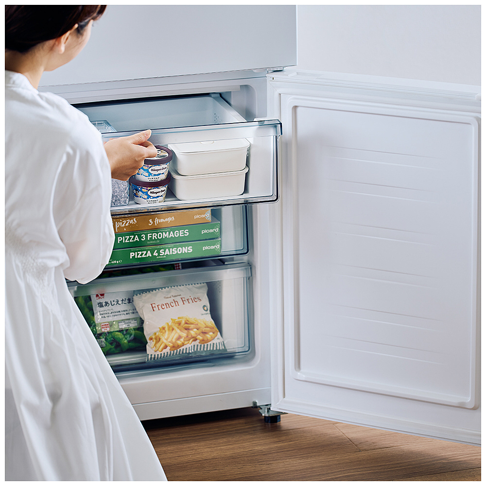 省エネ性能が高い、家計にやさしい冷蔵庫です。耐熱天板は電子レンジが置けて、引き出し式の冷凍庫は中が見渡しやすく整理もしやすい、忙しい毎日に寄り添う、安心して使える冷蔵庫です。?