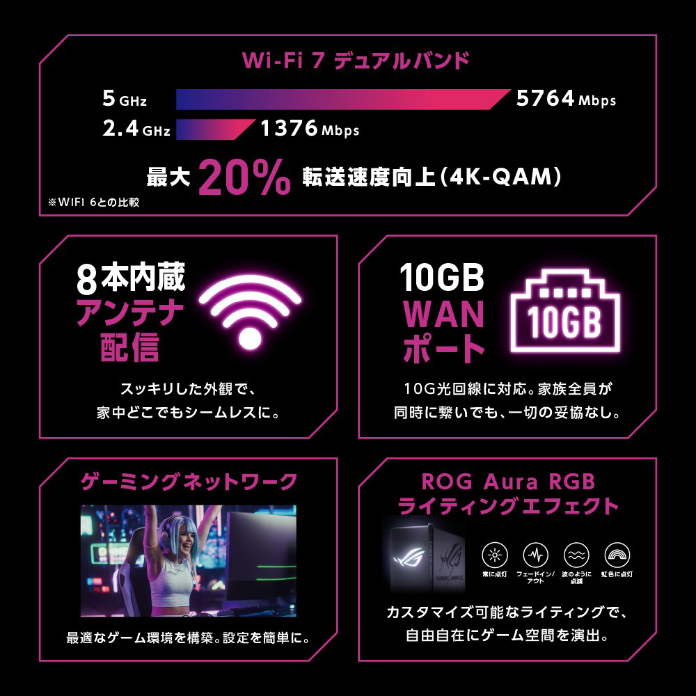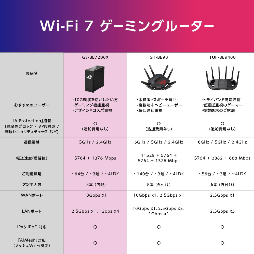 Wi-Fiルーター 5764+1376Mbps ROG Strix GS-BE7200X [Wi-Fi 7(be) /IPv6対応]