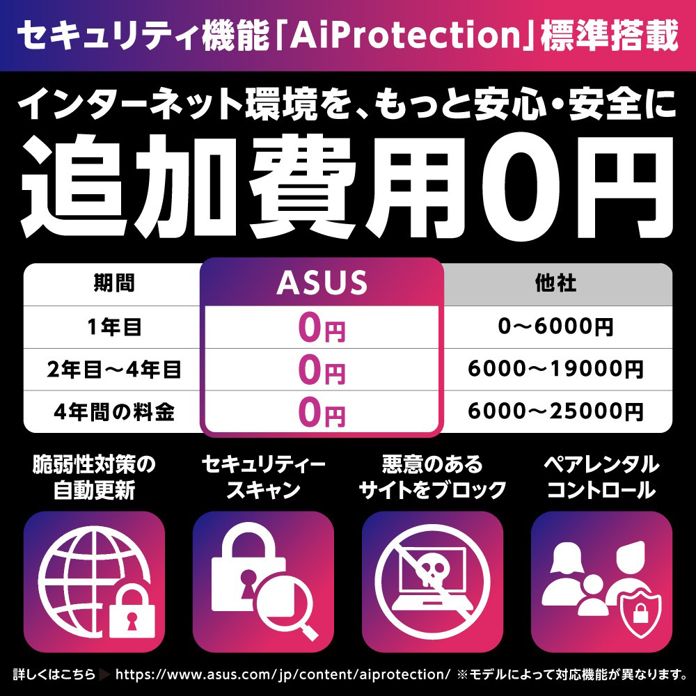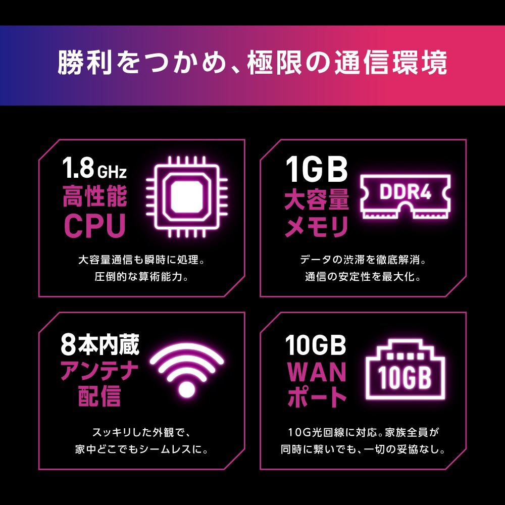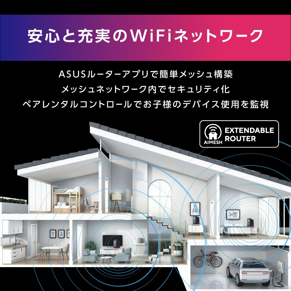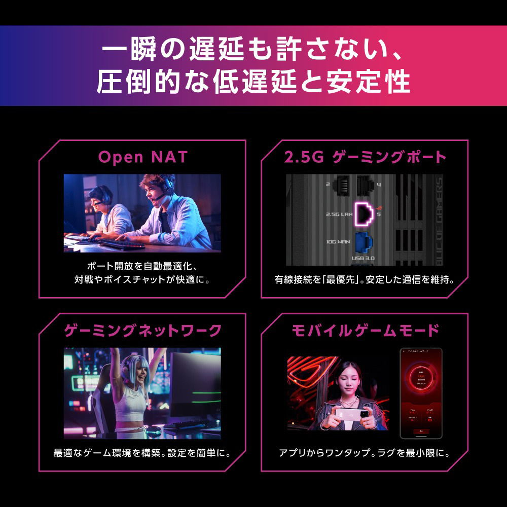 4096-QAM対応、10Gポート、モバイルゲームモード、AURA RGB、AiMesh対応、無料のネットワークセキュリティと充実したVPN機能
