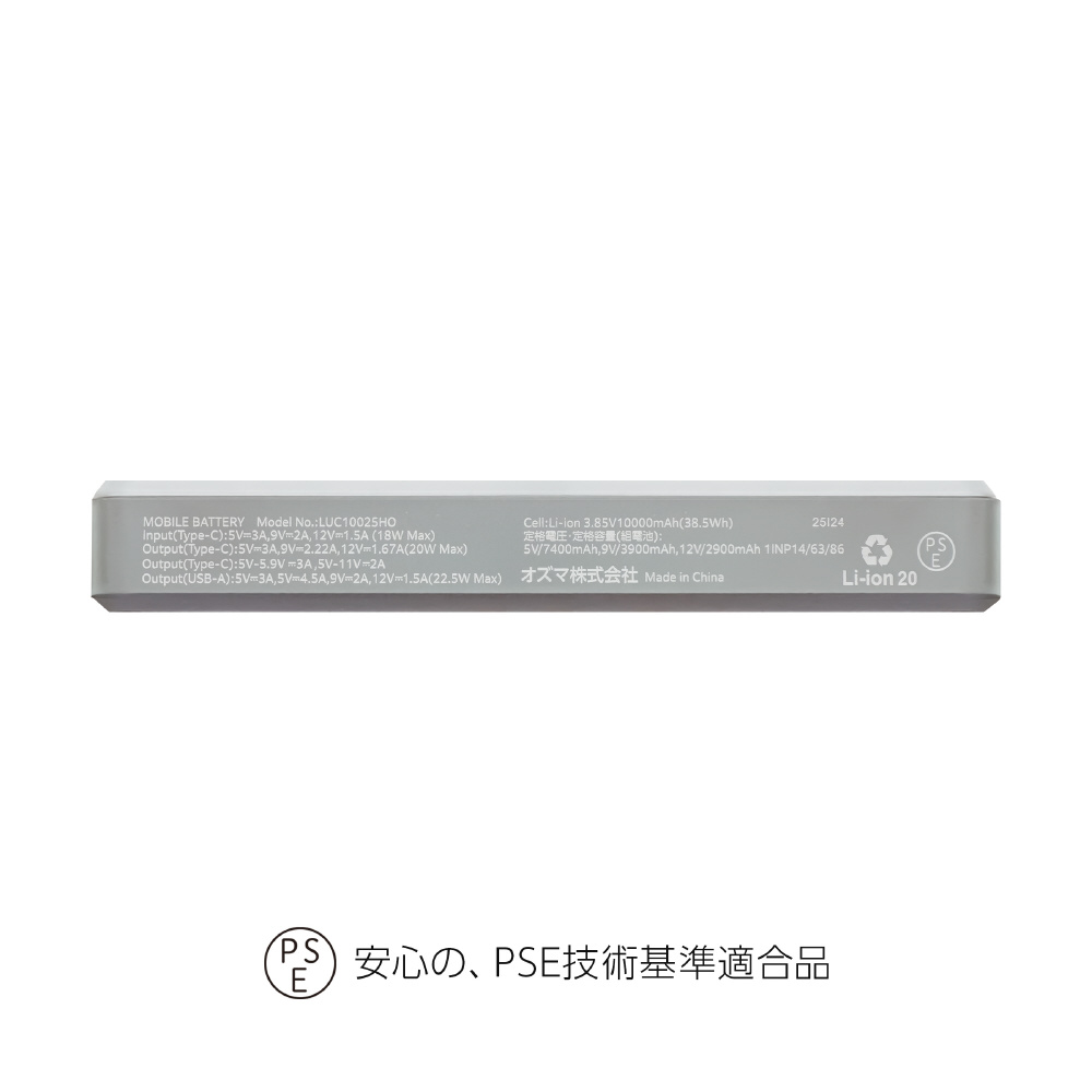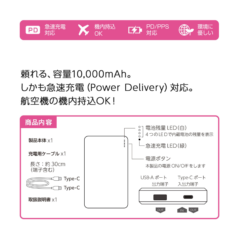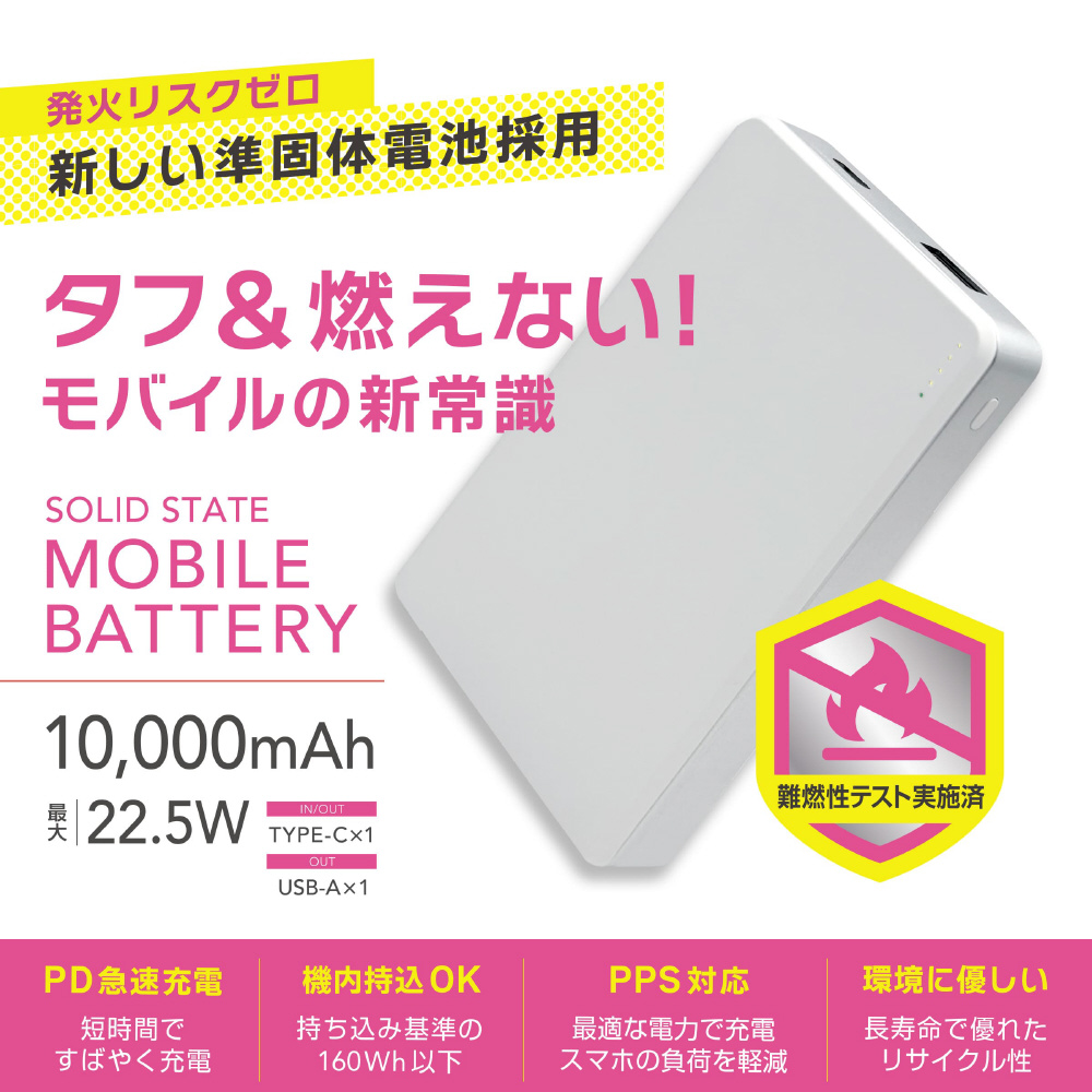 | 商品名 | 準固体モバイルバッテリー 10000mAh 22.5W ホワイト SSLUCM100-CCWH [USB Power Delivery対応 /2ポート] |