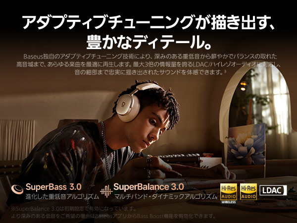 Baseus独自のアダプティブチューニング技術により、深みのある重低音から鮮やかでバランスの取れた高音域まで、あらゆる楽曲を最適に再生します。
