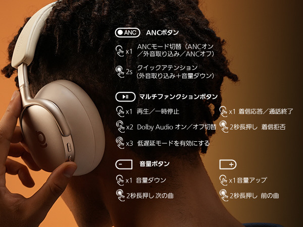 | 音楽再生時間 | 100時間:ANCオフ/70時間:ANCオン |